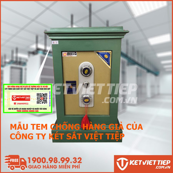 Trên mỗi sản phẩm két sắt Việt Tiệp chính hãng: két sắt chống cháy, két sắt cao cấp, két sắt khóa cơ, két sắt điện tử, Két sắt vân tay, …. sẽ được dán 01 tem chống hàng giả được cấp phát bởi: Hội chống hàng giả và bảo vệ thương hiệu Việt Nam để khách hàng dễ tra cứu.