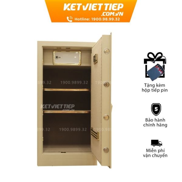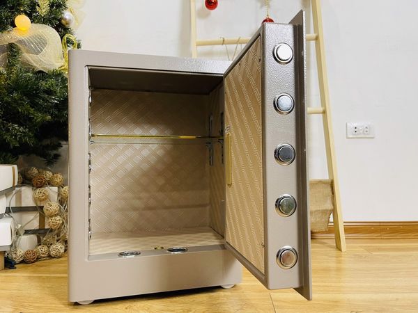 - Két sắt Bojin: Két sắt kiểu dáng thanh lịch, nhẹ nhàng với màu nâu nhạt, được trang bị cả khóa vân tay và khóa điện tử đời mới:
