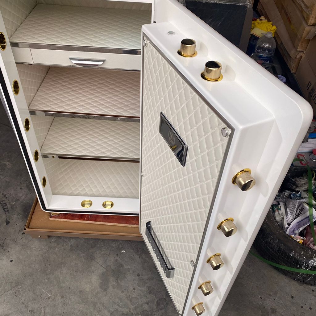 - Nội thất sản phẩm rất sang trọng và tinh tế với lớp da đồng màu với thân két, làm nổi bật lên sự giá trị, sang trọng của những tài sản quý giá lại có thể giúp những tài sản đó giữ được sự toàn vẹn, tránh khỏi những vết trầy xước không đáng có do việc tiếp xúc trực tiếp với bề mặt kim loại gây ra.