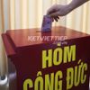 Két sắt được sơn lớp sơn màu đỏ đặc trưng, cùng dòng chữ hòm công đức, giúp mọi người dễ dàng nhận biết.