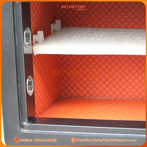 - Khả năng chống cháy ưu việt do bên trong được chống cháy bởi bột alumium kết hợp sợi gốm nên có khả năng chống cháy lên Két sắt được thiết kế với lớp chống cháy chất lượng cao, bảo vệ tài sản an toàn trong các vụ hỏa hoạn thông thường – đạt tiêu chuẩn kiểm định của nhà sản xuất.