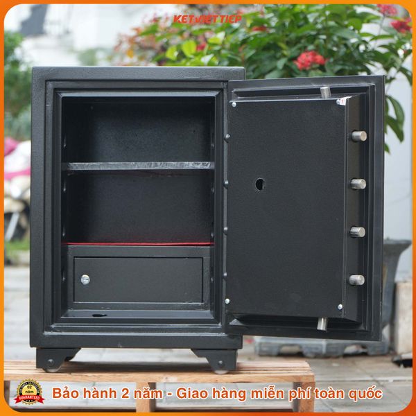 - Trong lòng két được trang bị 1 hộp ngăn kéo có khóa riêng biệt và 1 khay di động giúp khách hàng phân chia diện tích sử dụng phù hợp.