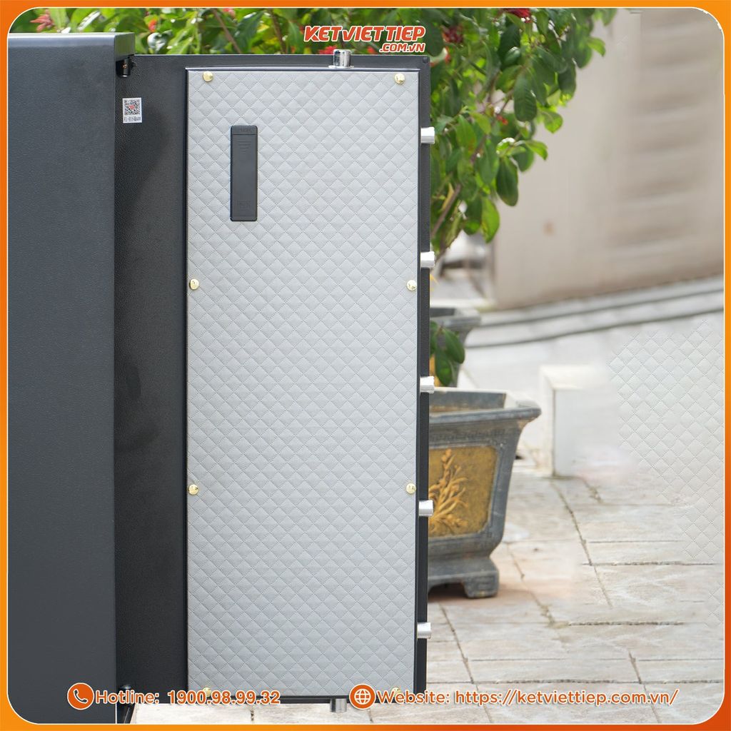 Cánh cửa: Gia công từ thép tấm dày, ôm khít hoàn toàn với thân két, khe hở chỉ vài ly, đóng mở êm chắc. Thiết kế này giúp ngăn tuyệt đối tác động ngoại lực, tăng khả năng chống nạy và giữ thẩm mỹ tinh tế.