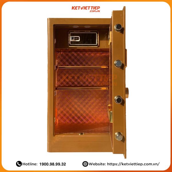- Thiết kế bên trong cũng là một điểm đáng chú ý khi chiếc két được chia thành 3 ngăn rất khoa học, trong đó có một ngăn khóa phụ để cho người dùng cất trữ những tài sản đặc biệt, cần sự bảo mật cao hơn nữa. Với hệ thống nhiều ngăn của chiếc két, chúng ta có thể tận dụng để cất trữ nhiều tài sản, sắp xếp gọn gàng, ngăn nắp