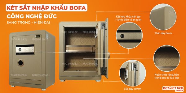 Két sắt Bofa được biết đến là thương hiệu két sắt nhập khẩu nổi tiếng nhất hiện nay tại thị trường Việt Nam. Với thiết kế sang trọng, bắt mắt cùng nhiều tính năng hiện đại, cao cấp, két sắt Bofa được đánh giá là dòng két sắt đáng sử dụng nhất hiện nay.