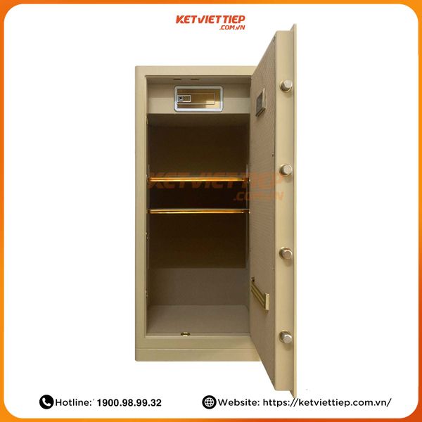 - Thiết kế khoa học: Chiếc két được thiết 3 ngăn khoa học, hợp lý trong đó có 1 ngăn kéo phụ tạo điều kiện để ta có thể phân loại, sắp xếp tài sản một cách phù hợp, gọn gàng. Đặc biệt, chiếc két còn có một không gian bí mật ở chân két phục vụ cho việc cất giữ những tài sản đặc biệt, không ai có thể phát hiện nếu như không phải chủ nhân thực sự của chiếc két.