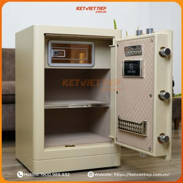 Sản phẩm còn được phân chia không gian rất khoa học và hợp lý. Phần lòng két được chia thành 3 ngăn riêng biệt làm tăng diện tích sử dụng, tạo không gian để sắp xếp đồ đạc gọn gàng, ngăn nắp. Ngoài ra, két sắt còn có một ngăn khóa riêng biệt, là nơi lý tưởng để cất trữ những tài sản có giá trị đặc biệt, cấn sự bảo mật và an toàn cao.