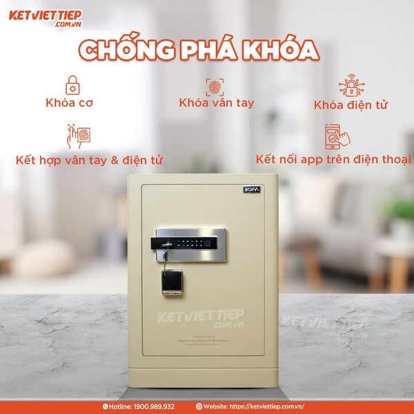 - Chống cháy: Két sắt BOFA có thiết kế thép và nội thất bọc da sang trọng, tuy nhiên không có lớp chống cháy cách nhiệt, nên khả năng chịu nhiệt và bảo vệ tài sản khi hỏa hoạn không phải là thế mạnh của dòng này.