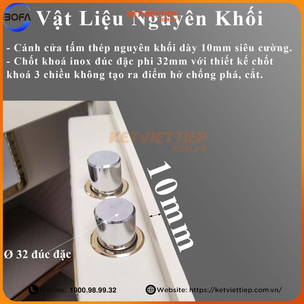 - Bền bỉ, chắc chắn: Dù cho sở hữu một kích thước rất vừa phải nhưng sản phẩm két sắt đến từ thương hiệu Bofa vẫn có sự chắc chắn và đảm bảo an toàn. Chiếc két có cấu tạo từ những tấm thép dày nguyên khối, được gia công bởi công nghệ hàn laser hiện đại nên trở thành một khối thống nhất, có khả năng chống chịu vô cùng tốt.
