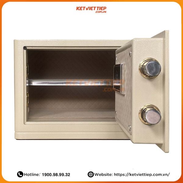 - Nội thất sang trọng: Bên trong lòng két được bao bọc bởi lớp da cao cấp có họa tiết nhẹ nhàng, sang trọng. Chi tiết này có tác dụng rất lớn, vừa giúp tôn lên sự giá trị của những tài sản quý giá lại giúp chúng tránh được những hư hại, trầy xước do việc tiếp xúc trực tiếp với bề mặt kim loại gây ra.