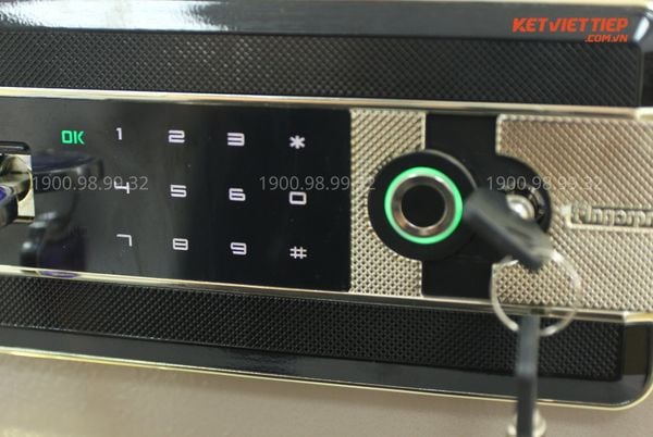- Để thiết lập vân tay mới, ta chỉ cần bấm phím 2 rồi chạm vân tay vào cảm biến 4 lần để két sắt nhận diện và lưu vân tay chính chủ. Két sắt báo OK tức bạn đã thêm vân tay mới thành công.