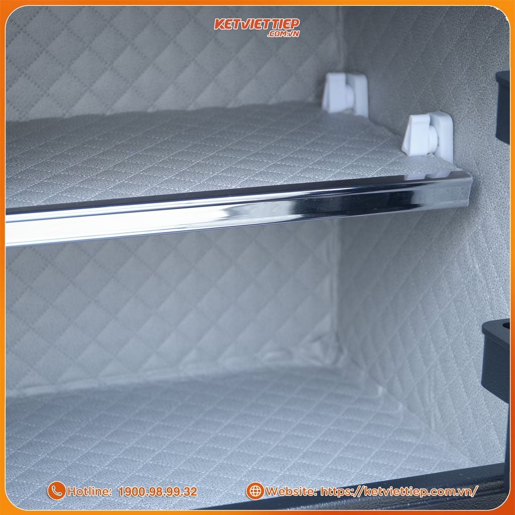 Nội thất bọc da kim cương cao cấp, chia thành hai tầng khoa học, vừa bảo vệ vàng bạc – giấy tờ khỏi trầy xước, vừa tạo nên không gian sang trọng thể hiện đẳng cấp chủ nhân.