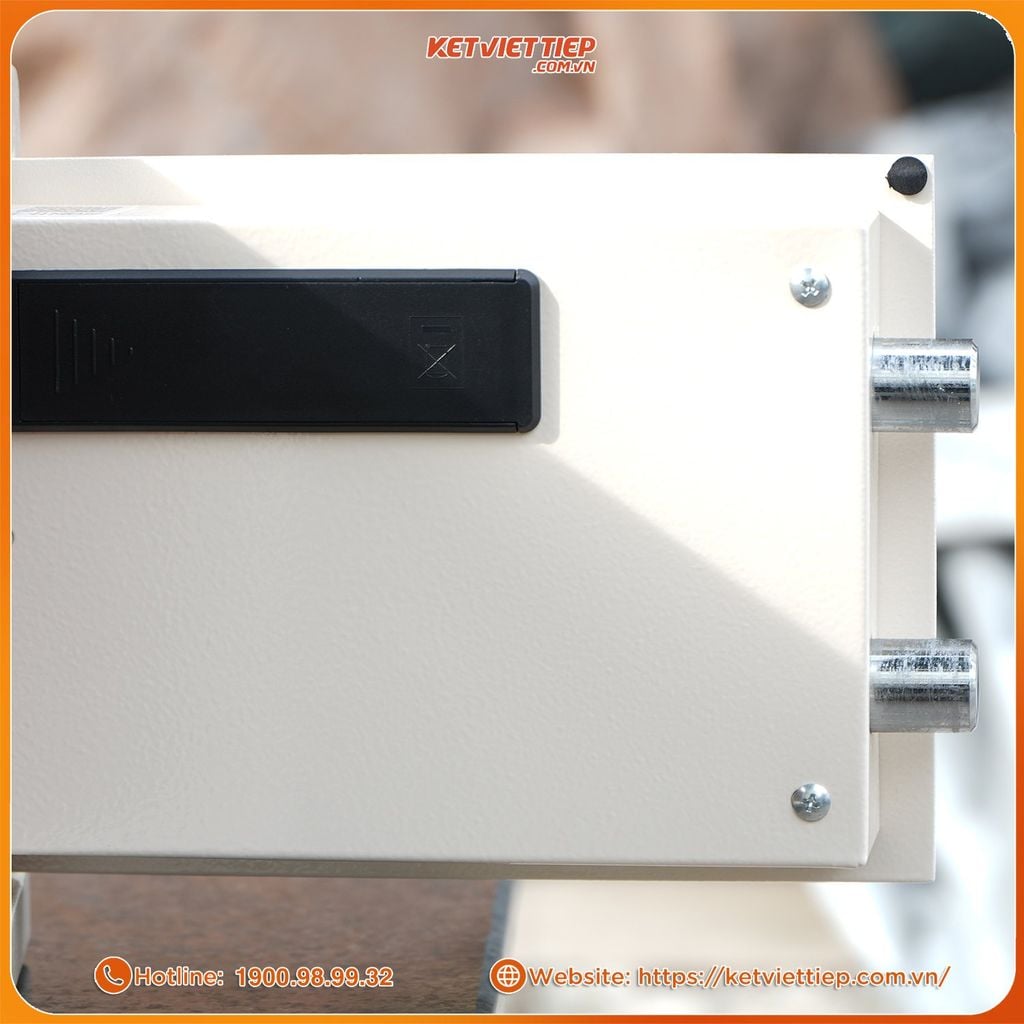 Hệ thống cố định và chống di chuyển: Phía sau két có 2 lỗ bắt vít âm chắc chắn, cho phép cố định két vào tường hoặc thành tủ, tăng cường bảo vệ và hạn chế dịch chuyển khi bị tác động.