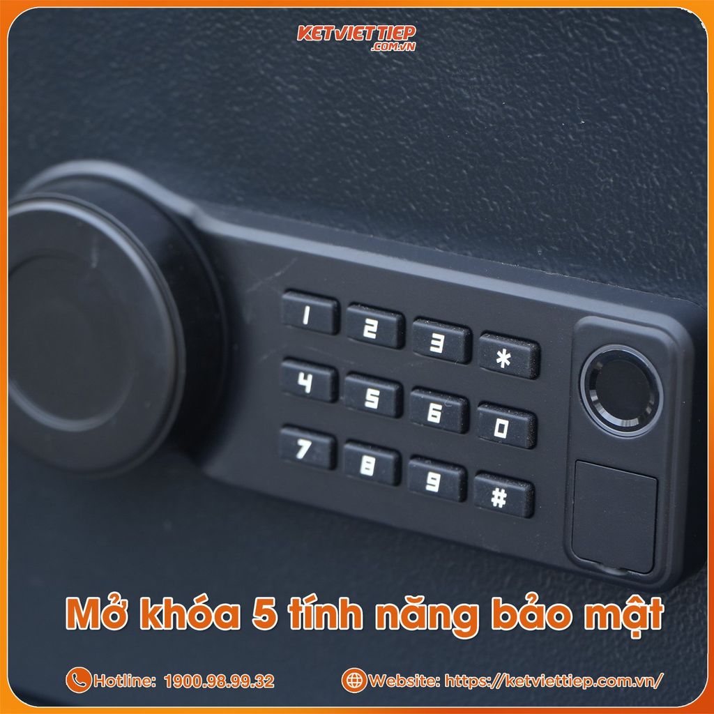 Phương thức mở khóa: Vân tay + điện tử + mở bằng cơ + mã kép + mở qua app điện thoại