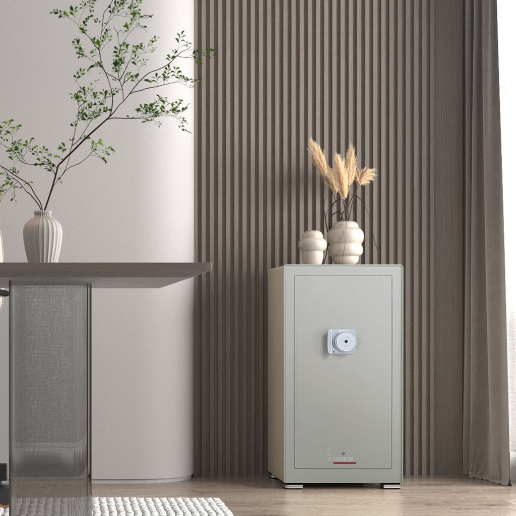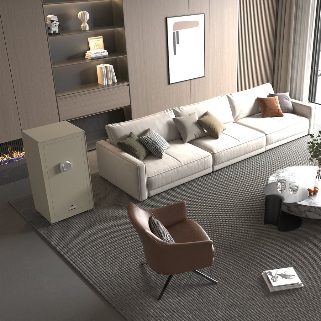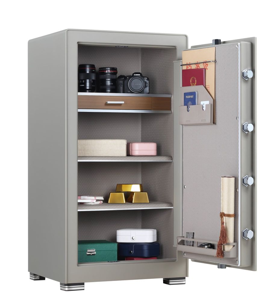Cánh cửa tích hợp khay đựng hộ chiếu, tài liệu và phong bì quan trọng, tối ưu không gian sử dụng. Tổng thể nội thất mang phong cách hiện đại, tinh tế như một tủ bảo quản tài sản cao cấp, vừa đảm bảo an toàn vừa nâng tầm thẩm mỹ cho không gian sống.