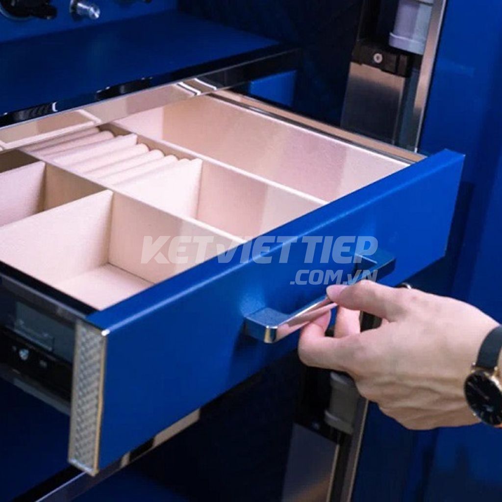 Chống cháy: Két sử dụng thân thép và nội thất bọc da, chưa được trang bị lớp cách nhiệt nên không phải dòng chống cháy.