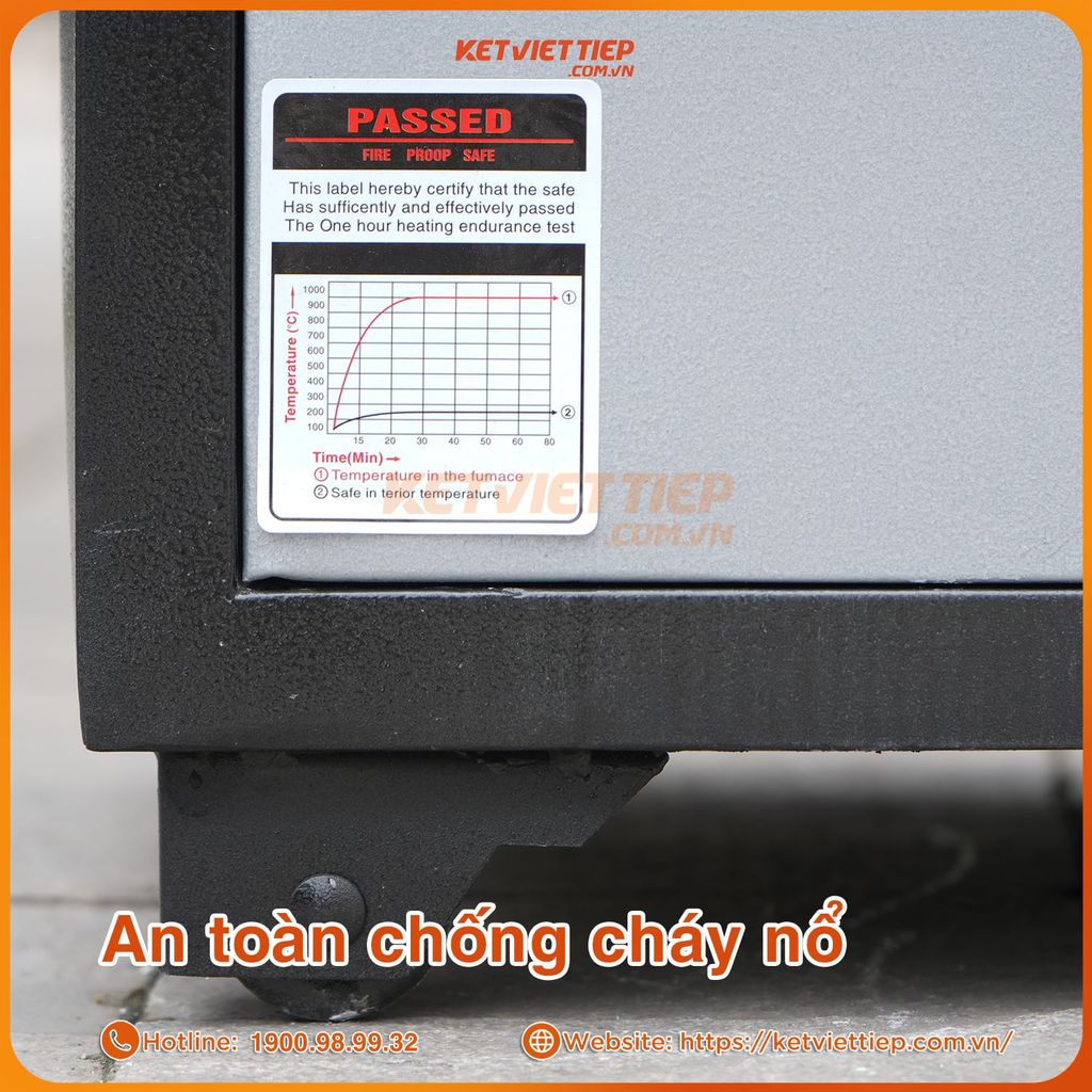 - Két sắt được thiết kế với lớp chống cháy chất lượng cao, bảo vệ tài sản an toàn trong các vụ hỏa hoạn thông thường – đạt tiêu chuẩn kiểm định của nhà sản xuất.