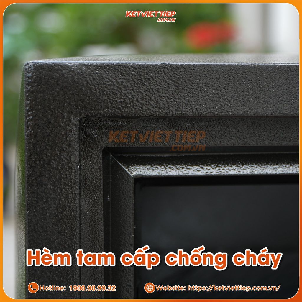 - Được thiết kế bởi thép đặc biệt, két sắt có thế chống chịu lửa và chống cháy rất cao, giúp bảo vệ giấy tờ, đồ vật của bạn trong két khi xảy không may xảy ra hiện tượng cháy nổ.