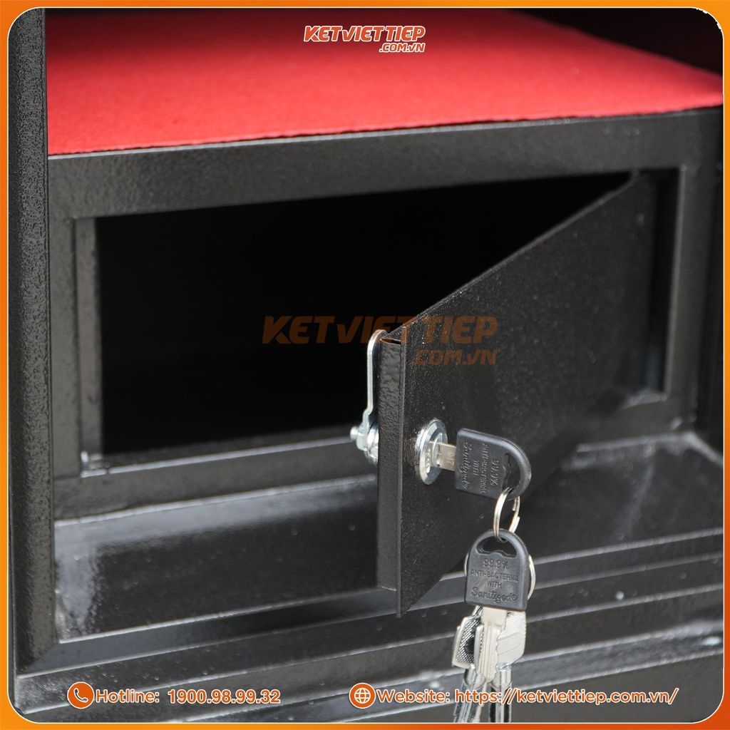 - Có 4 chốt dẹp ăn sâu vào trong lòng két khi sập cánh cửa vào giúp bảo vệ két một cách toàn diện.