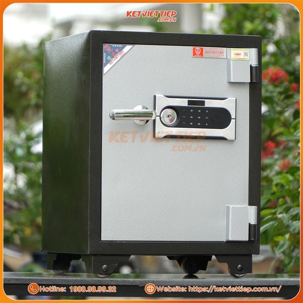 - Với trọng lượng lên đến 80kg két sắt việt tiệp chống cháy kv91dt được đúc bằng một lớp thép dày đặc vô cùng an toàn và chắc chắn.