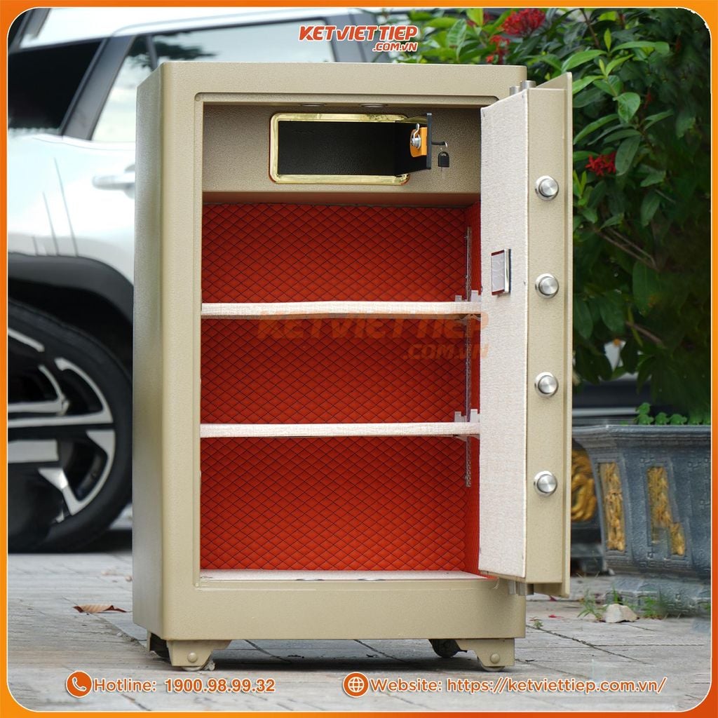 Kích thước trong: Cao 84cm × Rộng 52cm × Sâu 44cm – không gian rộng rãi, đựng được nhiều tiền mặt, hồ sơ, vàng miếng hoặc giấy tờ giá trị.