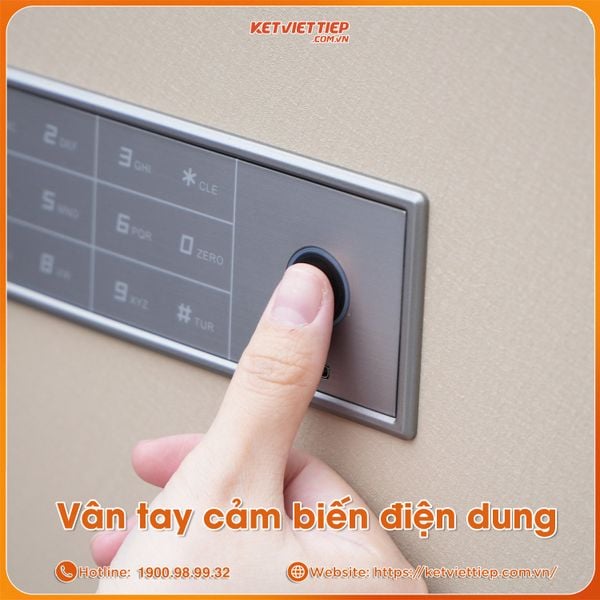 Cảm biến vân tay: Cảm biến điện dung thế hệ mới → Mở két chỉ trong 1 chạm, nhận diện cực nhanh và chính xác – công nghệ tiên tiến hơn cảm biến quang học.