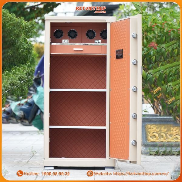 Ở phiên bản cao hơn, CRMCR còn có ngăn đồng hồ cơ tự xoay (watch winder) – chi tiết đẳng cấp chỉ xuất hiện ở những dòng két dành cho giới sưu tầm hoặc doanh nhân cao cấp.