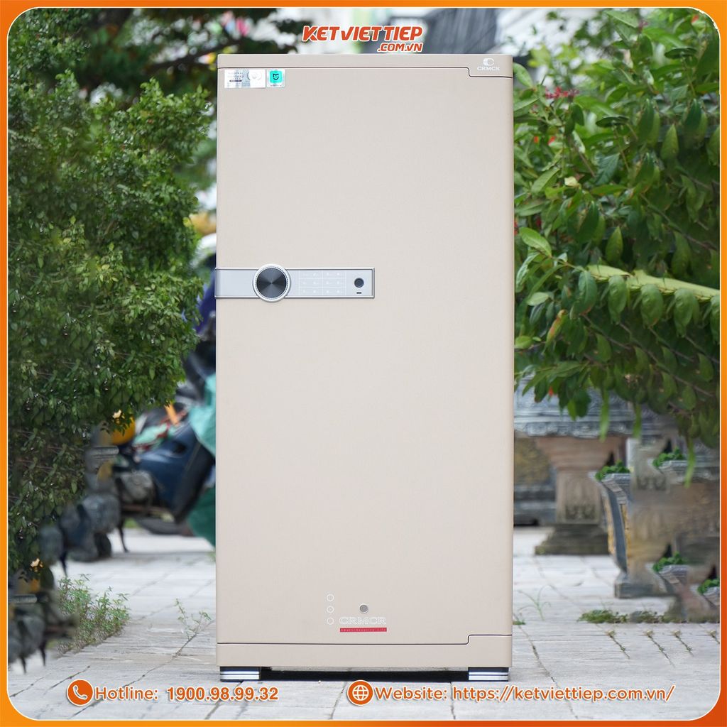Chốt khóa: Thép đặc đường kính 3.2 cm, ăn sâu 3.8 cm vào thân két Hệ thống khóa: Vân tay điện dung + mã số điện tử + chìa cơ giải cứu